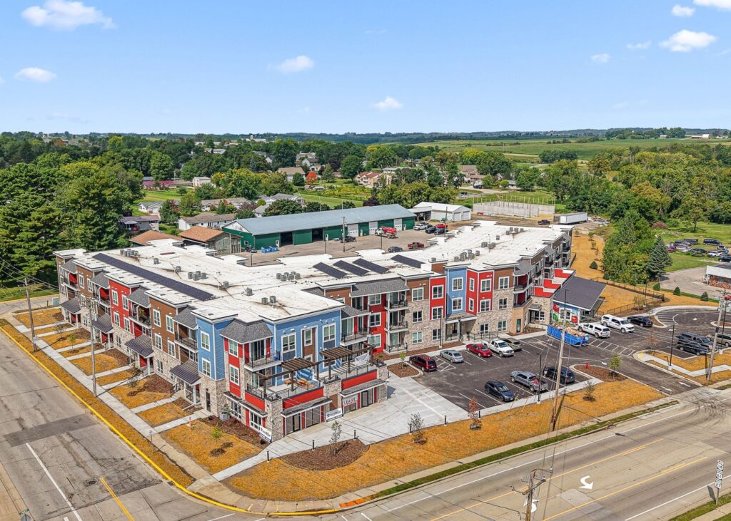 Main Street Apartments in Viroqua is a true reflection of what it means to build for community. What was once an old county facility has been completely reimagined into 65 modern apartments with retail space and a full-service daycare at the heart of town.