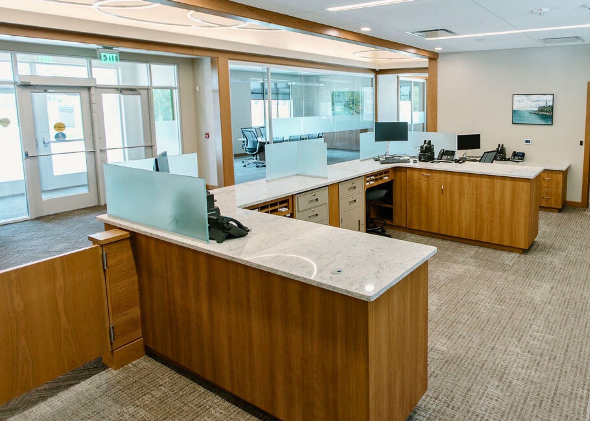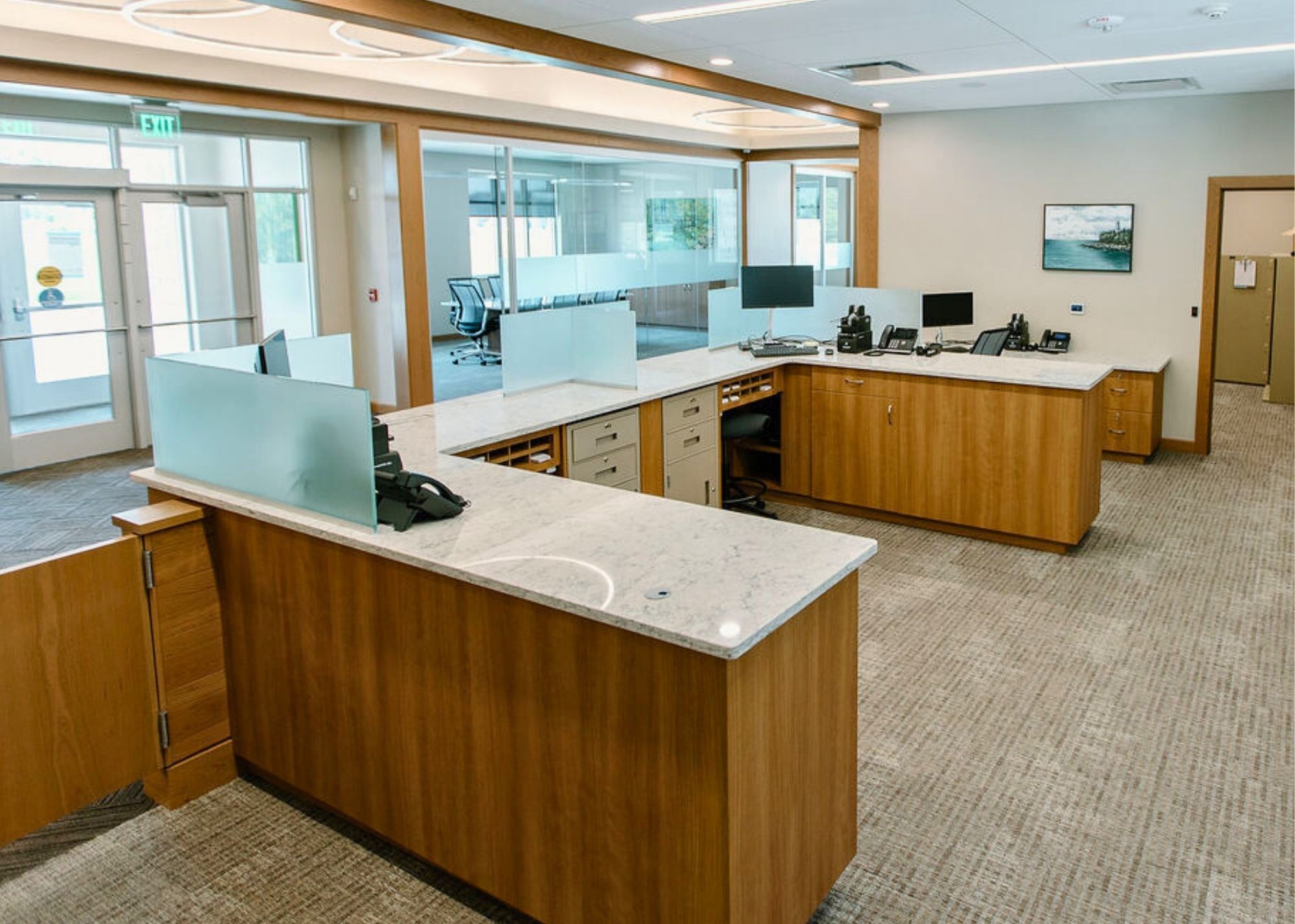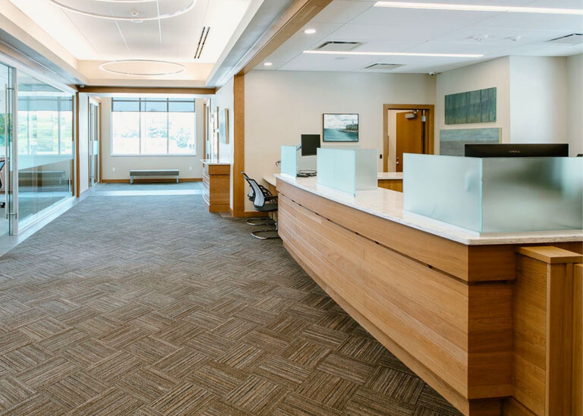 Every choice made on this project was intentional. The exterior features Fond du Lac Dimensional Clean Split Natural Stone from FDL Natural Stone, tying the building to Wisconsin’s landscape. Inside, the design incorporates locally sourced artwork and warm, inviting finishes that reflect Door County’s artistic spirit. Native landscaping completes the site, connecting the building to its surroundings and reflecting the natural beauty of Door County.